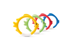 Il set di anelli da immersione IN TEX a forma di pesce è l’aiuto ideale per un apprendimento ludico dell’immersione. Grazie ai colori vivaci e alla stabilità sul fondo della piscina, i bambini individuano facilmente l’obiettivo e si esercitano volentieri nel trattenere il respiro e nell’orientamento sott’acqua.