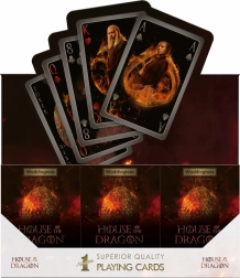 Immergiti nell'avventura di gioco di carte con Carte da gioco Waddingtons House of the Dragon, che ti porteranno direttamente nel mondo affascinante di strategie audaci e potenti personaggi. Ogni carta mostra l'energia di eroi leggendari, draghi e luoghi chiave della serie House of the Dragon.