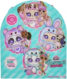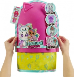 Preparati per la più grande sorpresa da scartare con L.O.L. Surprise Tweens Costume. Prima apri la zip sul fondo della confezione e rimuovi la copertura rosa per rivelare la carta da pacco misteriosa! Guarda come la carta si espande e, una volta completamente gonfiata, strappa la carta per rivelare un adorabile costume da gatto turchese! Ma non è la fine delle sorprese! Solleva la testa di peluche del gatto e trova la stupefacente bambola Emo Emma Tweens all'interno!