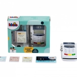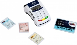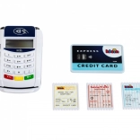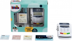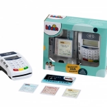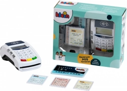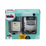 Il set del terminale include 1 carta di credito con funzione di pagamento contactless e 3 scontrini di gioco. Interagire con i clienti a un moderno terminale di pagamento insegna ai bambini abilità comunicative e la manipolazione della carta di pagamento favorisce lo sviluppo della motricità.