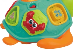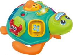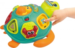 La tartaruga interattiva è un giocattolo educativo versatile che offrirà a tuo figlio ore di gioco creativo e apprendimento. Questa adorabile tartarughina è un classico gioco di incastri che aiuta i più piccoli a sviluppare la motricità fine e la capacità di riconoscere forme e colori. Dopo aver inserito correttamente le forme, la tartaruga premia il bambino con luci e canzoncine melodiche e filastrocche in polacco e in inglese. Inoltre, la tartaruga ha una cordicella, così il bambino può tirarla dietro di sé, favorendo lo sviluppo della coordinazione motoria. È un modo eccellente per introdurre i più piccoli al mondo dell’apprendimento attraverso il gioco, sostenendo al contempo lo sviluppo del linguaggio e dei sensi.