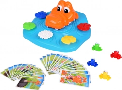 Il gioco da tavolo interattivo con coccodrillo porta tensione e divertimento in ogni round. I giocatori girano carte con animali: non appena appare il coccodrillo, è il momento di reagire in un lampo e premere il proprio ninfeo. Chi riesce a sfuggire più spesso alle fauci del coccodrillo in cinque round vince!