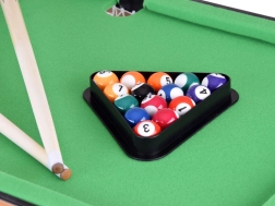 Due stecche, set di bilie colorate, triangolo, gesso e spazzolina: tutto pronto per giocare subito e per una facile manutenzione.