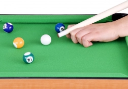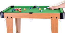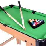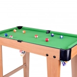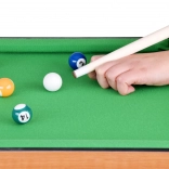 Goditi il biliardo ovunque e in qualsiasi momento con il set da tavolo compatto per bambini. Grazie alle solide gambe in legno e al panno verde di qualità, il gioco è fluido e il tavolo stabile. Le dimensioni 73,5 × 40,5 × 59 cm sono perfette per la cameretta o il soggiorno.