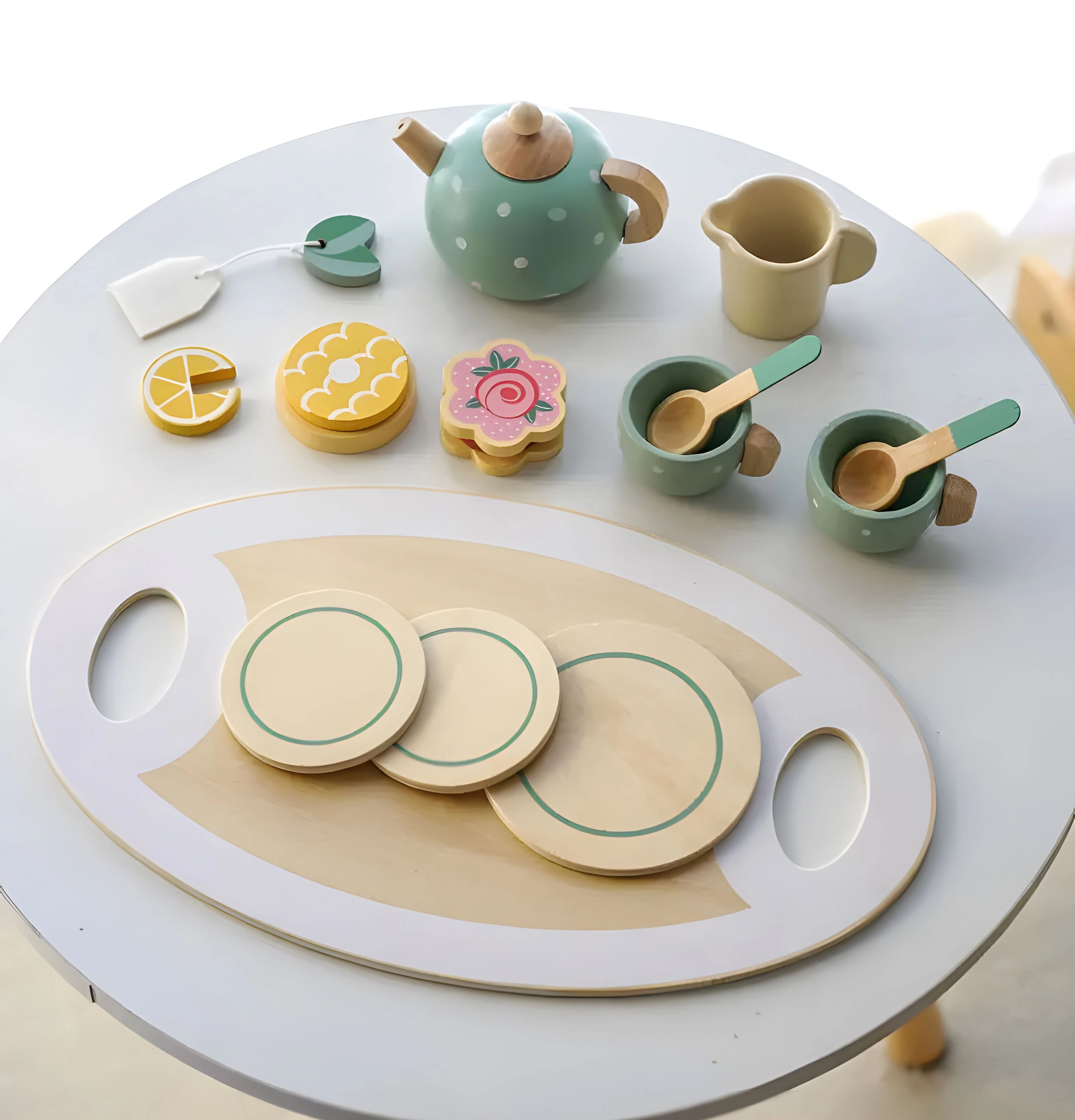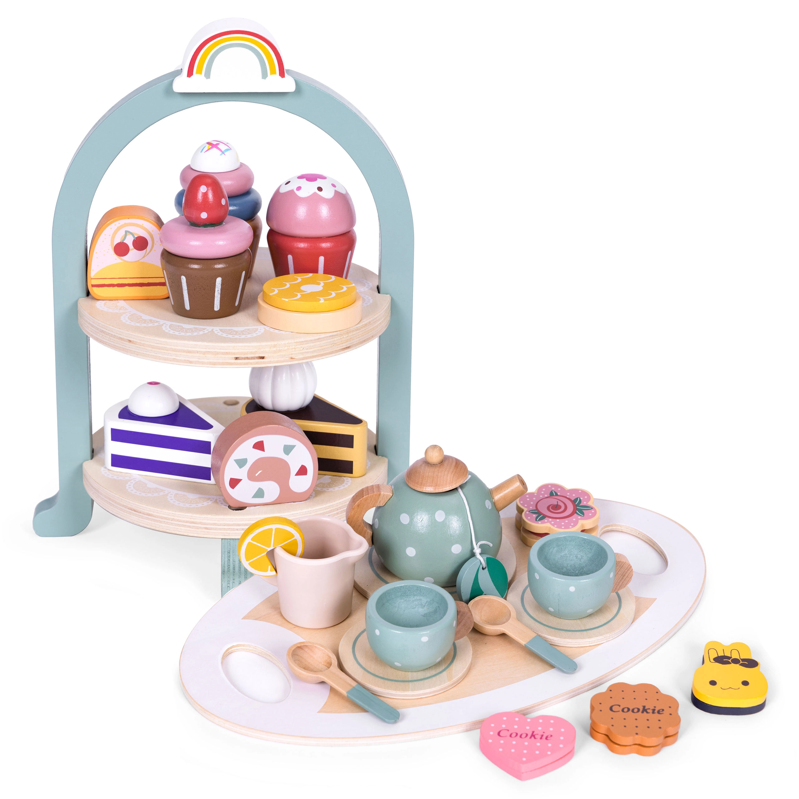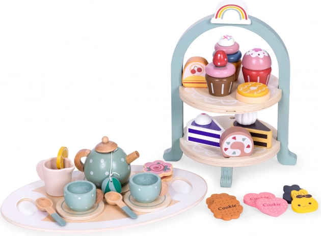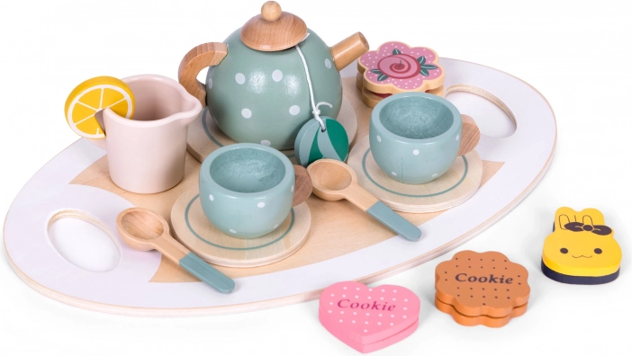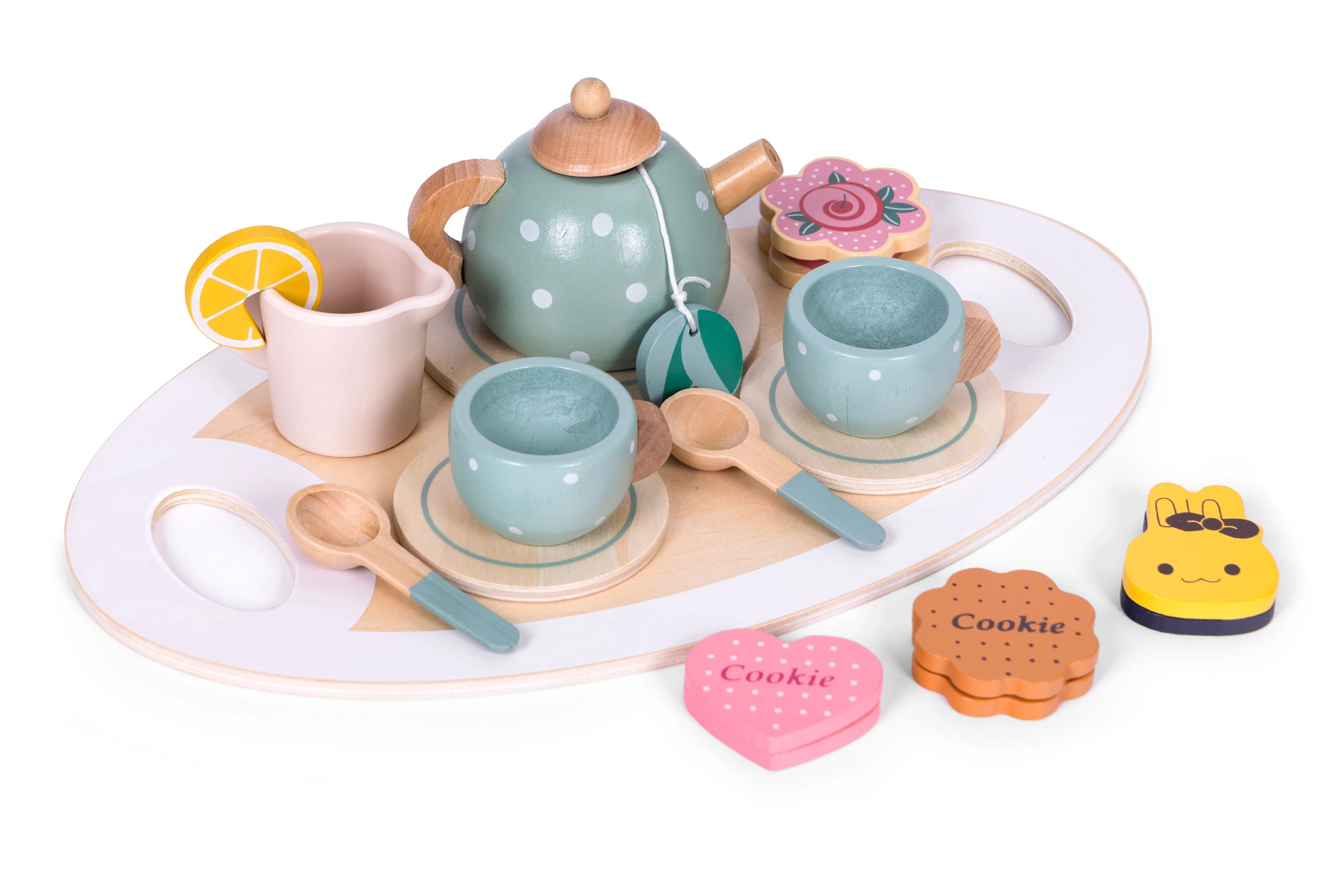 Questo splendido set immerge i bambini nel mondo degli adulti, dove si divertiranno in modo fantastico con la loro famiglia. Include tutto ciò che è necessario per organizzare un pomeriggio speciale: teiera, tazzine, piattini e un pratico vassoio. Nessun tè è completo senza dolci, quindi il set include colorati biscotti, tortine e muffin che delizieranno con il loro aspetto realistico. Grazie a questi giocattoli, il bambino può interpretare il ruolo di un adulto e invitarvi a un delizioso tè e spuntini dolci. Oltre al grande divertimento, il vostro bambino svilupperà la sua immaginazione e abilità manuali, e imparerà anche come preparare un delizioso tè o caffè e acquisirà le regole del galateo a tavola.