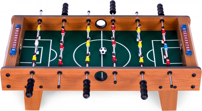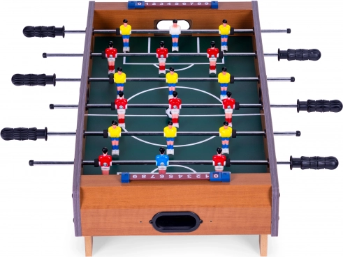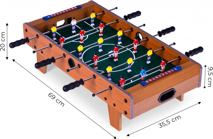Il mini calcio balilla ECOTOYS è un'ottima scelta per incontri familiari e tra amici. Due contatori di punteggio e maniglie antiscivolo garantiscono un gioco semplice e confortevole per due giocatori. La costruzione in materiali in legno è compatta con dimensioni 70x35 cm, il che consente di posizionare il tavolo anche in spazi più piccoli.