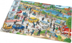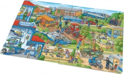 Questo grande libro accompagna i bambini attraverso una giornata intensa in una stazione di polizia e2 dalle ricerche dei ladri di gioielli alla soluzione delle discariche abusive, fino al ritrovamento di un cagnolino smarrito. Grazie alle ricche illustrazioni e ai testi chiari, i piccoli lettori si divertiranno con storie che sviluppano le capacite0 di osservazione, il vocabolario e il ragionamento logico.