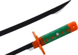 Questa spada samurai per bambini riproduce fedelmente il leggendario stile Nichirin: ha una lama nera e un'impugnatura arancione‑verde con motivo geometrico per una presa salda e confortevole. La lama in plastica sicura, lunga circa 40 cm, e l'impugnatura di circa 15 cm favoriscono un gioco sicuro e creativo.