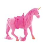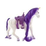 Scopri la magia di prenderti cura del tuo unicorno. Questo unicorno in plastica con rivestimento morbido tipo fliscia ha una criniera e una coda folte, che possono essere pettinate e acconciate più volte. Grazie alla sella è pronto per ogni avventura e passeggiata di fantasia.