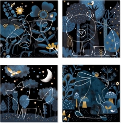 Nella confezione trovate tutto il necessario: 16 sfondi illustrati, 16 sagome, ago da perforazione, robusto supporto e libretto illustrato con istruzioni. I materiali sono in carta e cartone con certificazione FSC, per una creatività attenta alla natura.