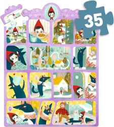 Questo splendido puzzle racconta la storia di Cappuccetto Rosso, narrata in forma di fumetto. Un grande divertimento per famiglie e bambini, che potranno godersi l’assemblaggio e allo stesso tempo la lettura della fiaba. La confezione include non solo 35 pezzi del puzzle, ma anche un poster con la storia e 3 personaggi in cartone, che daranno vita al tuo gioco creativo.
