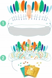 Il set contiene 15 piume sintetiche colorate e 7 piume illustrate con dettagli metallici per splendide decorazioni.