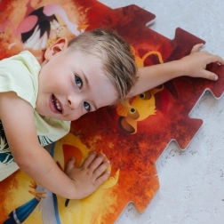 I puzzle in schiuma Il Re Leone TREFL sono la scelta ideale per un gioco sicuro e creativo. Il materiale speciale, simile a un tappetino da campeggio spesso, garantisce morbidezza, resistenza e facile manutenzione. I bambini si divertiranno non solo a comporre i motivi preferiti del film Il Re Leone, ma anche a costruire cubi e tunnel.