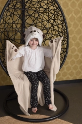 Divertente e morbida coperta riscaldante con cappuccio in design di animaletto con due tasche a forma di zampetta per le mani. Ideale per i bambini che vogliono giocare e sentirsi al caldo e sicuri allo stesso tempo.