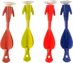 Il pacchetto include una fionda rossa e quattro proiettili colorati con ventose per un gioco sicuro.