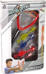 La fionda è realizzata con materiali resistenti approvati per l'uso sicuro ed è dotata di una comoda impugnatura in schiuma. Il pacchetto include quattro proiettili di gomma di diversi colori, che garantiscono un gioco sicuro grazie alle ventose.
