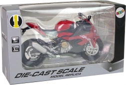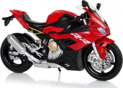 Il modello BMW S1000RR è stato realizzato in colore rosso; ogni dettaglio, come ad esempio la catena e il telaio, è stato curato con la massima attenzione. Ogni appassionato di moto ne sarà entusiasta. Premendo la parte posteriore della moto si attivano i suoni e il faro anteriore; il manubrio mobile consente di sterzare durante il gioco e gli pneumatici in gomma aderiscono al suolo. Grazie al cavalletto estraibile, la moto starà perfettamente su uno scaffale.