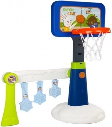 Il supporto è stabile grazie alla base che può essere riempita con acqua o sabbia. Il set è adatto per interni ed esterni, ha la certificazione CE ed è ideale per bambini dai 3 anni in su. La confezione contiene tutto il necessario per giocare subito: canestro con rete, tabellone, palla e pompetta.