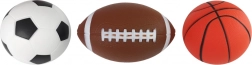 Divertente set di tre morbide palline per piccoli sportivi che offre un gioco sicuro in casa e all’aperto. Grazie al materiale leggero e morbido, le palline sono ideali per bambini da 3 anni. Il design richiama le vere palle da calcio, basket e baseball, così i bambini possono imitare i loro sport di squadra preferiti migliorando al contempo coordinazione e forma fisica.