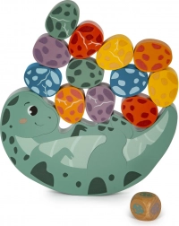Scopri avventure emozionanti nel mondo dei dinosauri con questo gioco di equilibrio in legno. L'obiettivo dei giocatori è posizionare le uova sul dorso del dinosauro mantenendo equilibrio. Il gioco supporta lo sviluppo della motricità fine, della coordinazione mano-occhio e della pazienza nei bambini.
