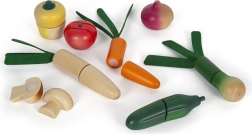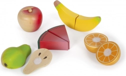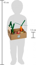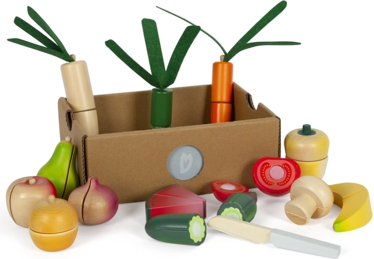 Il grande set di alimenti con coltello di legno è l'accessorio ideale per ogni cucina per bambini. Contiene frutta e verdura realisticamente lavorate, che sono unite da velcro e possono essere facilmente "tagliate". Il set favorisce il gioco creativo e insegna ai bambini la responsabilità verso l'ambiente.