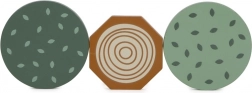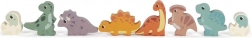 Il set include 6 blocchi con dinosauri e altri blocchi con motivi di alberi, montagne e sole. Ogni blocco è realizzato in legno certificato FSC al 100%, garantendo che il materiale provenga da foreste gestite in modo sostenibile. Oltre al divertimento, il giocattolo ispira i bambini a conoscere la natura e la storia delle creature preistoriche.