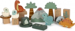 Set di legno Dino è ideale per i bambini che amano i dinosauri e il gioco creativo. Con più di 28 diversi blocchi, i bambini possono creare un paesaggio in cui vivevano una volta i dinosauri, sviluppando le loro abilità motorie e immaginazione spaziale.