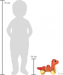 Il delizioso dinosauro farà felice ogni bambino nei primi passi. Grazie alla sua costruzione a tre sezioni, offre un effetto divertente ad ogni tiro del cordoncino. Con le ruote in gomma, il tuo piccolo dinosauro può muoversi facilmente provvedendo a un giro silenzioso.