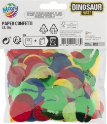 I coriandoli con dinosauri e forme circolari sottolineano subito il tema della festa e piacciono a piccoli e grandi appassionati della preistoria.