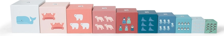 Un colorato set di dieci cubi impilabili in resistente cartone aiuta i bambini a imparare i numeri, riconoscere gli animali e allenare la motricità fine e grossa. I cubi di diverse dimensioni possono essere impilati a piramide oppure disposti in orizzontale per un apprendimento divertente e lo sviluppo del pensiero logico.
