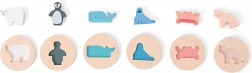 Questo inserto in legno di qualità unisce divertimento e apprendimento. Gli animaletti – foca, orso polare, granchio, pinguino, volpe e orca – si inseriscono in gettoni rotondi con sagoma ritagliata e dello stesso colore, facilitando l’orientamento e rafforzando il riconoscimento di colori e forme.