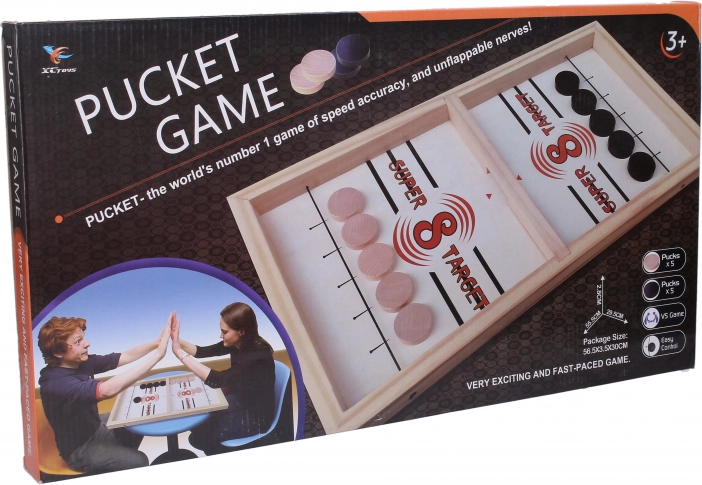 Vi presentiamo l'hockey da tavolo in legno, perfetto per ogni serata in famiglia o incontro amichevole. Questo gioco è progettato affinché possano partecipare sia i bambini dai 3 anni in su che gli adulti. Basta prendere cinque dischetti, tendere la corda e cercare di farne arrivate il più possibile sul lato dell'avversario.