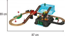 Scopri l’allegra pista ferroviaria in legno con 55 pezzi, che unisce il mondo della ferrovia e del cantiere. Include una locomotiva autopropulsa (a AAA), ricchi accessori tra cui ponte, gru, segnali stradali, alberelli e personaggi, e anche un pratico box contenitore integrato nel tracciato. Stimola creatività, immaginazione e lo sviluppo della motricità fine dei bambini dai 3 anni.