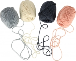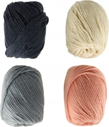 Scopri il piacere del fai‑da‑te con il set di quattro filati in tonalità accuratamente coordinate (panna, grigio, blu scuro, albicocca). Grazie alla piacevole miscela di poliestere e acrilico, il filato non infeltrisce, si annoda meno e scorre bene sui ferri e sull'uncinetto. I colori si combinano alla grande per motivi a contrasto e armonici.