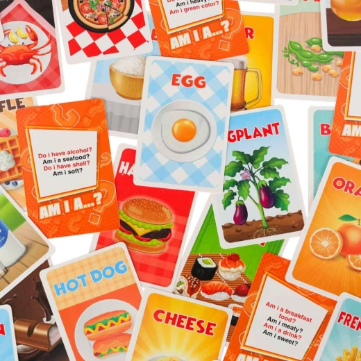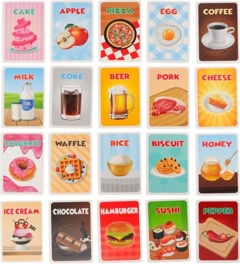 Contiene 54 carte con diverse immagini di cibi, fasce per la testa e gettoni. Il gioco è progettato per essere divertente e interessante sia per i bambini che per gli adulti. È ideale per rafforzare le abilità sociali e promuovere il fair play. Per questo è una scelta perfetta per le serate in famiglia e gli incontri tra amici.