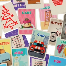 Il gioco comprende 42 carte con immagini varie e scritte in inglese. Inoltre sono incluse 8 carte vuote per creare le proprie carte da indovinare. La durata di ogni turno è misurata da una clessidra, che aggiunge dinamica e spirito di competizione al gioco.
