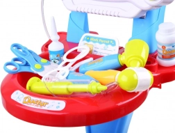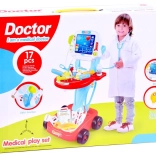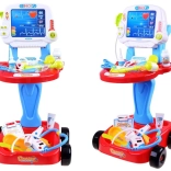 - Carrello con monitor, occhiali, stetoscopio, termometro con regolazione e retroilluminazione, otoscopio con luce, misuratore di pressione con regolazione e retroilluminazione, martelletto neurologico, siringa, specchietto dentale con luce, 2× forbici, bisturi, vaschetta, finta crema disinfettante, collirio, barattolo di medicinali, badge del medico, scheda del paziente