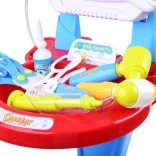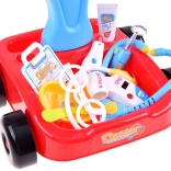 Scopri il divertente carrello medico per bambini con effetti luminosi e sonori, che favorisce il gioco creativo del dottore, l’apprendimento del primo soccorso e lo sviluppo dell’empatia. La ricca dotazione include stetoscopio, termometro, otoscopio, misuratore di pressione, siringa e altri accessori – il tutto in sicura plastica.
