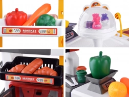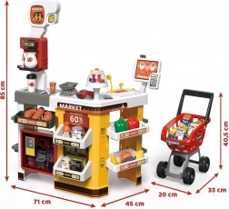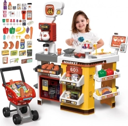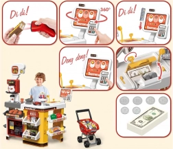 Il supermercato per bambini è un set di gioco completo che include molti elementi divertenti. Dotato di pasticceria, macchina per il caffè, frigorifero e carrello della spesa, questo set di gioco imita un vero supermercato. La cassa è funzionale, emette suoni realistici e luci, aggiungendo autenticità al gioco. Per un'esperienza ancora maggiore, c'è un frigorifero illuminato con simulazione di nebbia, proprio come nei veri congelatori.