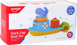 Dai bicchierini si può costruire una piccola piramide; sul fondo dei bicchierini sono presenti fori a diverse distanze, così puoi osservare diversi flussi d’acqua. La barca ha un mulinello sulla poppa che ruota sotto il getto d’acqua.
