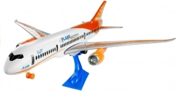 L’aereo presentato ha un design slanciato e pulito. Combina un bianco tenue con un arancione intenso, presente tra l’altro sulla coda del velivolo, così come sui motori e sulle ali grigio‑argento. Grazie ai dettagli come le strisce colorate, nonché scritte e marcature, l’aereo sembra reale, stimolando ancora di più gli occhi dei bambini.