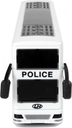 Regala gioia ai piccoli amanti dell’azione con lo stiloso autobus della polizia a due piani. Grazie al motore a retrocarica pull-back l’autobus parte da solo dopo essere stato tirato indietro, mentre effetti di luce e suono donano al gioco un’atmosfera realistica. Il design bianco con dettagli blu, scritta POLICE ed emblemi ricorda fedelmente un vero veicolo di servizio.