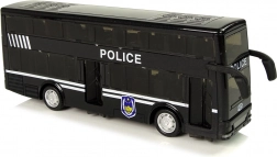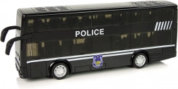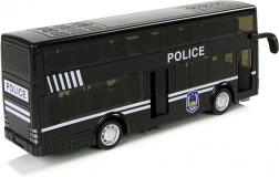L'autobus della polizia nero a due piani per bambini offre trazione a frizione (pull-back), effetti luminosi e sonori e interni dettagliati. Grazie ai pneumatici in gomma la guida è fluida e le scritte POLICE con stemmi aggiungono un look accattivante. Giocattolo ideale per sviluppare coordinazione e immaginazione e ottima idea regalo in una scatola regalo trasparente.