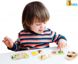 Imparare giocando è il modo più divertente. In questo set i bambini compongono le coppie corrette – l'animale simpatico e il cibo che gli piace. Grazie ai colori vivaci e alle illustrazioni intuitive capiscono velocemente le relazioni e sviluppano naturalmente il vocabolario, la conoscenza e il pensiero logico.