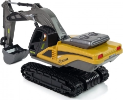 L’escavatore è realizzato nei colori tipici dei veicoli da costruzione. È dotato di trazione cingolata in gomma, in grado di affrontare superfici diverse come in un vero cantiere, non solo quelle perfettamente lisce.