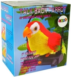 Come iniziare a giocare con il pappagallo colorato? È semplicissimo! Premi il pulsante situato nella parte centrale del ramo su cui è posto questo animaletto birichino e, non appena si accende la spia LED, parla o canta. Dopo qualche secondo il pappagallo ripeterà due volte le tue parole, cosa che ti farà sicuramente divertire. Se vuoi insegnargli altre parole, premi di nuovo il pulsante. Il giocattolo interattivo si spegne automaticamente dopo alcuni secondi di inattività. La simpatica imitazione è accompagnata da movimenti delle ali - provalo tu stesso già oggi.