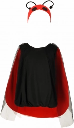 Un perfetto costume da coccinella per bambini a due pezzi, composto da un mantello rosso con pois neri e un cappello con antenne. È la scelta perfetta per varie feste e serate a tema.
