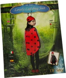 Costume da coccinella per bambini è un travestimento allegro ideale per diverse occasioni, come carnevali, recite scolastiche o Halloween. È progettato per essere comodo e adattarsi bene ai bambini con un'altezza di 100-110 cm.