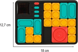 Questo gioco elettronico a scorrimento metterà alla prova la tua pazienza e arguzia. L'obiettivo è portare il blocco rosso al bordo inferiore dell'area di gioco facendo scorrere gli altri pezzi secondo le indicazioni sul display LED, senza sollevare alcun blocco. Ti aspettano 500 livelli sapientemente progettati con una sfida progressiva.