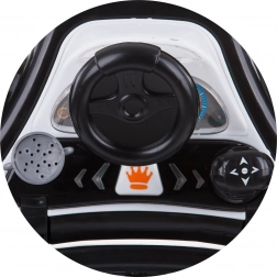 Il sedile ergonomico con 3 livelli di altezza cresce con il bambino e le ruote anteriori piroettanti a 360° facilitano le manovre. Il pannello removibile a forma di auto da corsa con pulsanti, suoni e luci stimola vista, udito e coordinazione. Il girello è realizzato con plastiche di qualità e sicure, si piega e si ripone facilmente e rispetta la norma EN 1273.